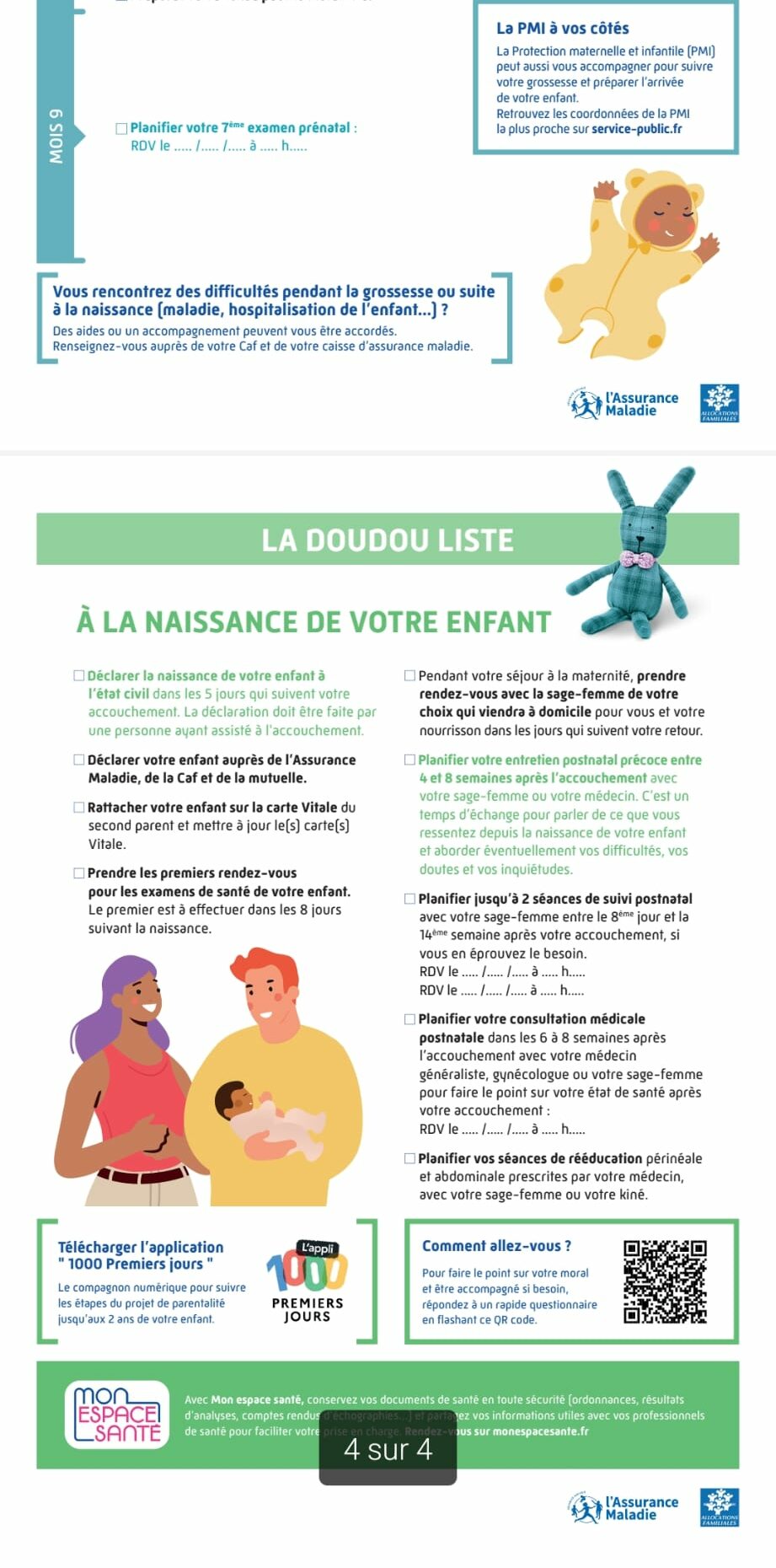 La "doudou liste ", mise en place par la CPAM et la CAF vous rappelle les rdv importants pendant et après votre grossesse.