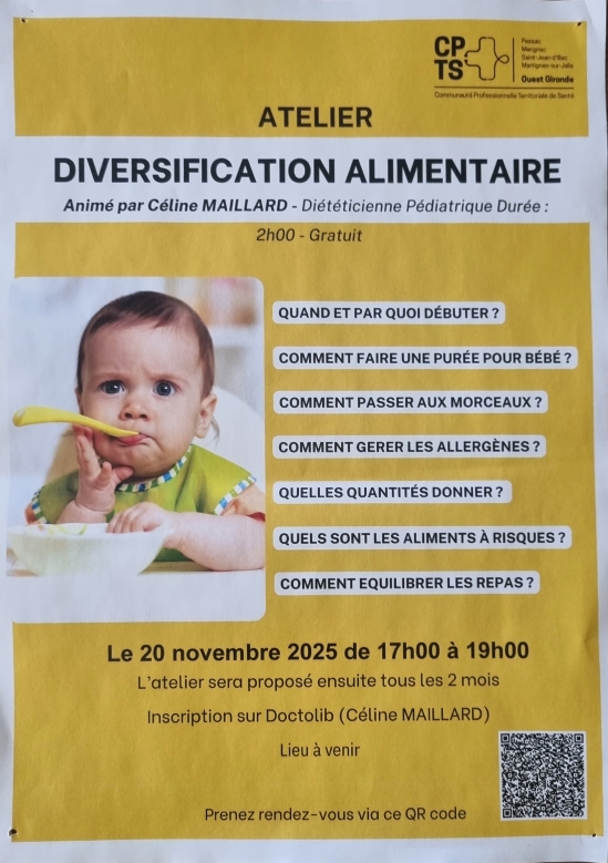 2 ème Atelier de diversification alimentaire animé par Celine MAILLARD diététicienne en ce 20 novembre 2025 :