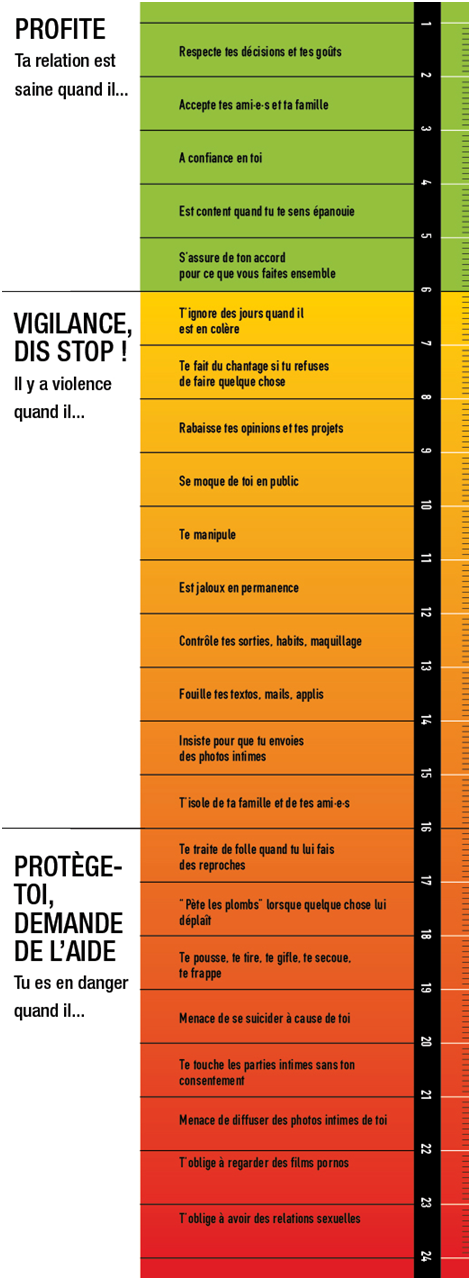 est un outil d’auto-évaluation avec 23 questions rapides permettant de repérer les comportements violents et de mesurer si la relation de couple est saine ou au contraire violente